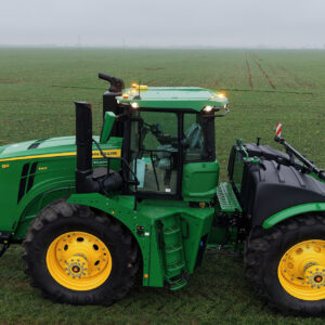 Traktori serije 9 ističu se maksimalnom snagom od gotovo 600 KS što omogućuje izvršavanje radova u optimalnim rokovima, odnosno veću preciznost i kvalitetu na više hektara. S udvojenim kotačima, ovi traktori dostižu širinu od 4,3 metra i dužinu od gotovo 8 metara. Posebno su opremljeni za rad tijekom noćnih sati jer imaju ugrađeno 18 radnih svjetala na poklopcu motora, krovu kabine i blatobranima. U kabini se nalazi G5 plus upravljački centar sa zaslonom veličine 32 centimetara, koji ima mogućnost AutoTrac aktivacije i kontrole sekcija. Traktor je opremljen i JD linkom, telematskim rješenjem koje omogućuje napredno praćenje svih parametara rada stroja.